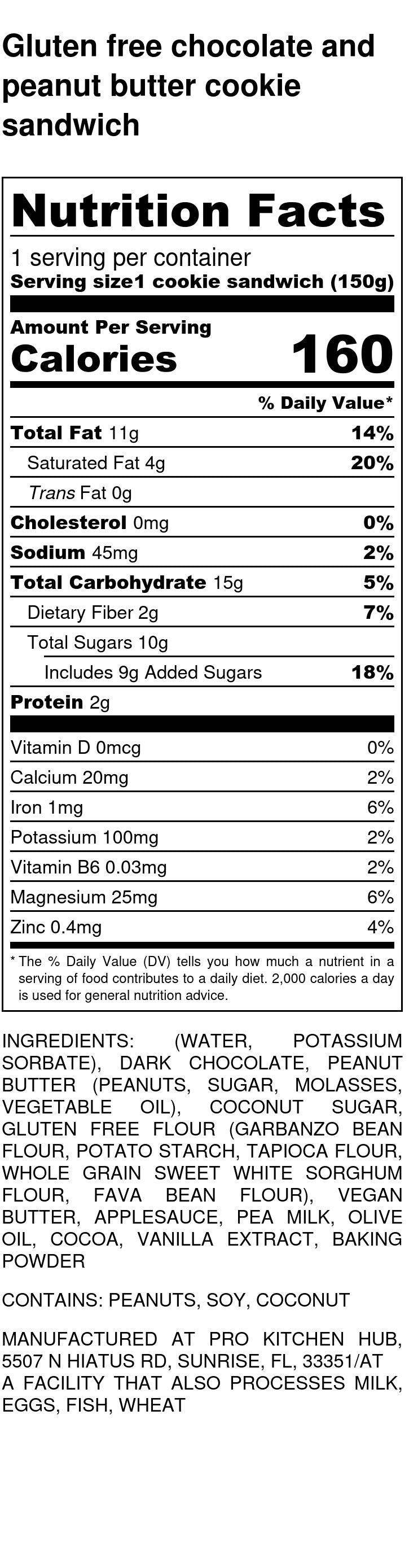 This soft baked "I can't believe it doesn't have gluten" cookie sandwich is filled with delicious peanut butter and chocolate cream.